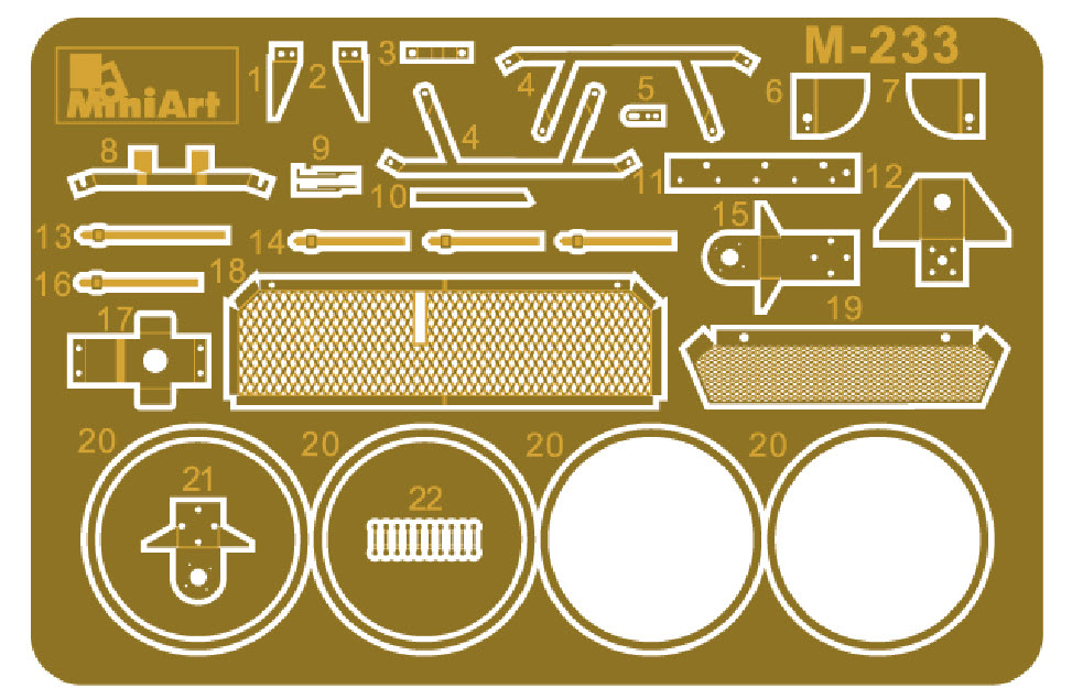 Photo-etched parts are offered for correct scale thickness and a scope for damage or removal if so desired. The decals are printed in house by MiniArt…DecalsMarking choices: