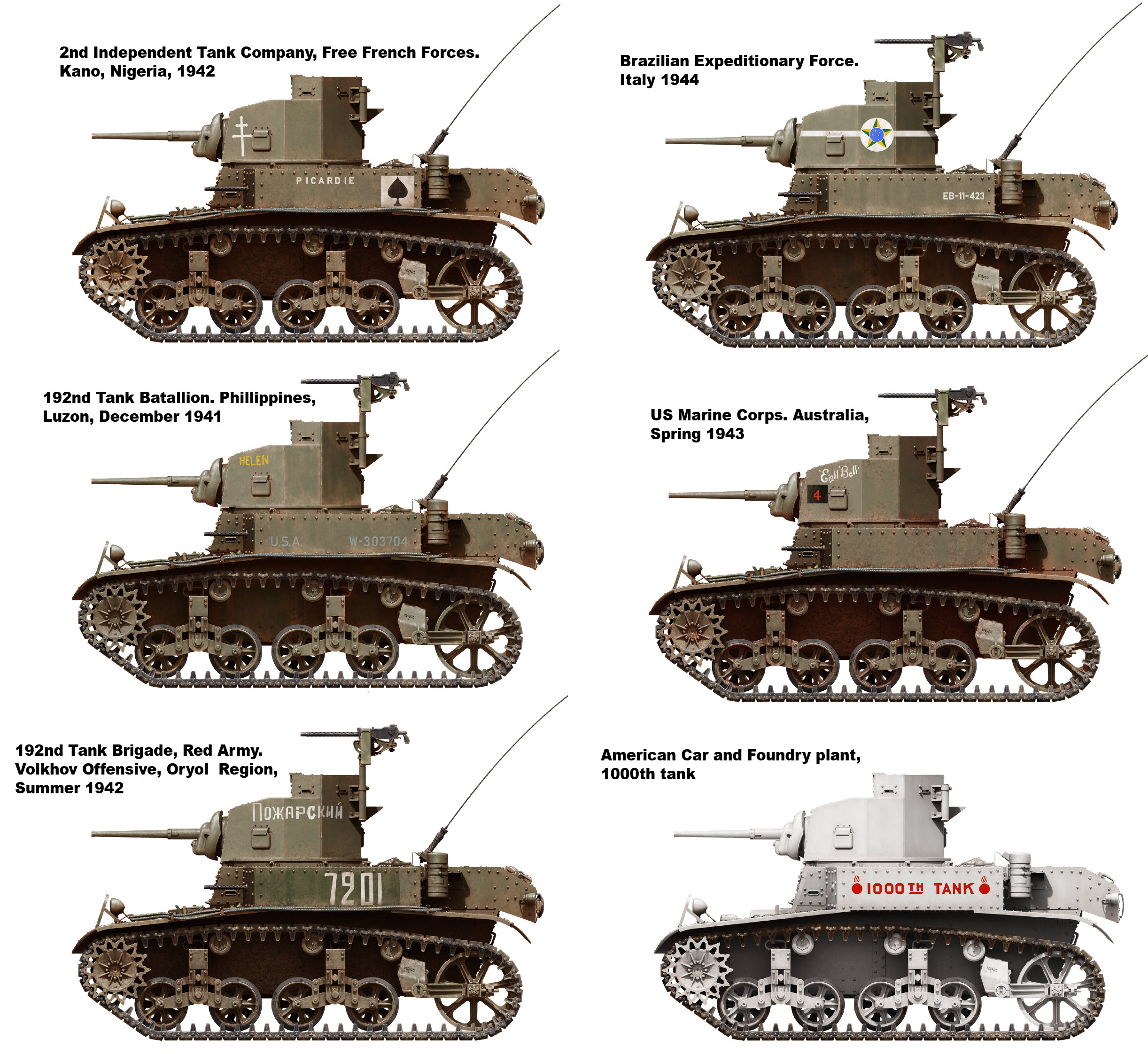 The US Army began development of a light tank in the early 1930s. The M3 series, which was launched in July 1940 after a succession of tanks with increasing armor and firing power, is the culmination of a long line that began as early as 1930. The British found the M3 to be under-gunned, but were so pleased with its mechanical performance that they nicknamed it “Honey.” These photos show an Free French Stuart from 1942 that was stationed at Kano, Nigeria. The M3 was used by American forces in the Philippines when the Japanese invaded in December 1941. Improvements were made to the M3A1 which went into production in May of 1942. These included a gyro stabiliser for the main 37mm gun, and power traverses for the turret. This was the first American tank to include such features. It is the 1000th Tank that celebrates with an all-white scheme, fresh from the Foundry Plant.