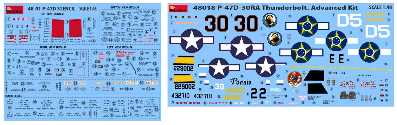 MiniArt have produced two decal sheets for this kit, with individual and stencil markings that fit the three aircraft.