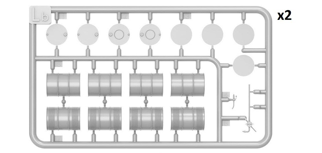 The oil drums: A great to compliment a lot of other MiniArt scenery like cables, plastic & metal barrels, & oil drums and tools to effect repairs and maintenance. There are two sprues of barrels which make twelve 200L oil drums plus the augers that go with them to extract the fuel.