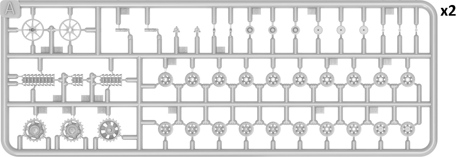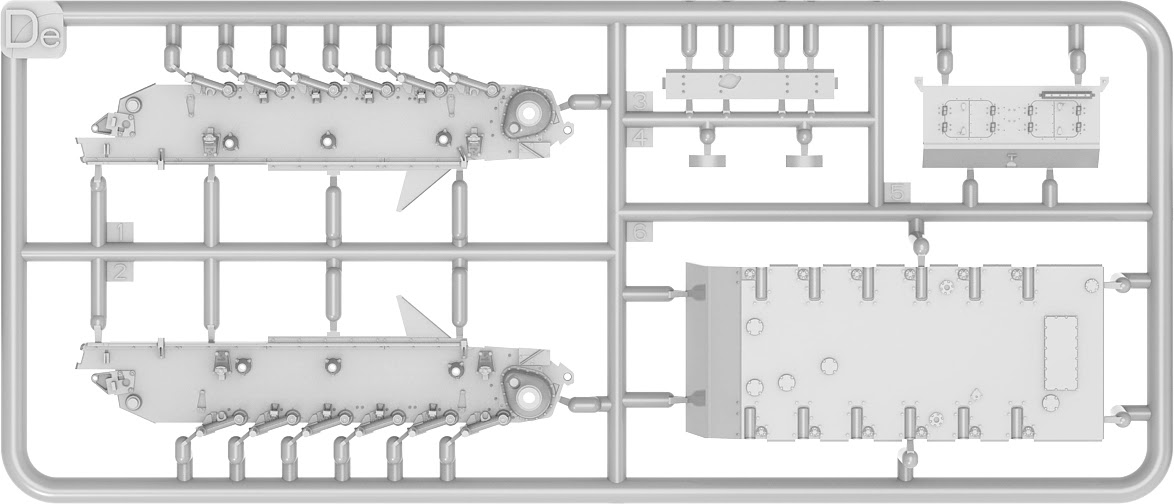 This kit also includes tow cables, tools and equipment for the exterior of the tank, hatches that can be opened or closed, clear parts are provided for the periscopes; & individual track links are included