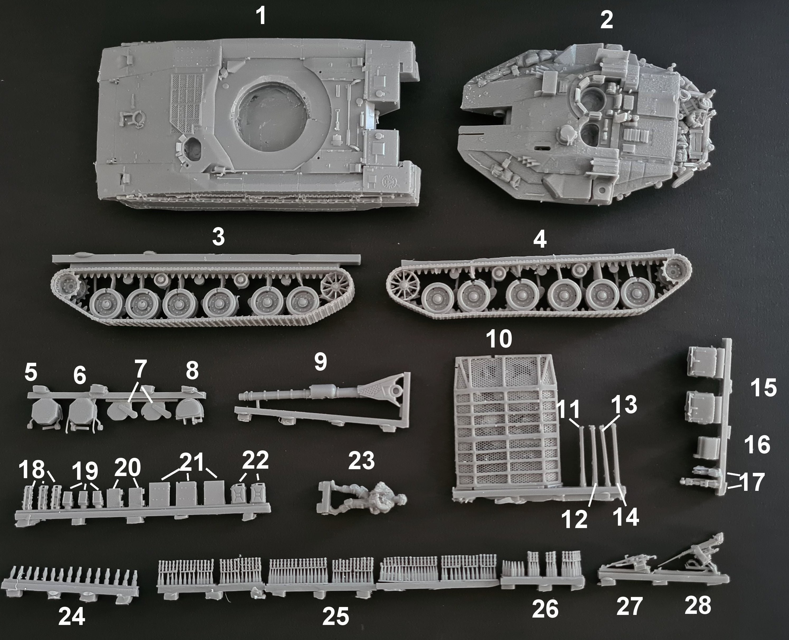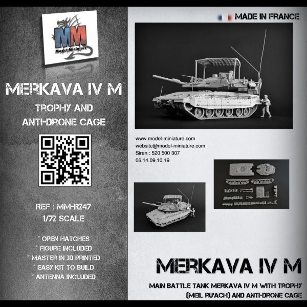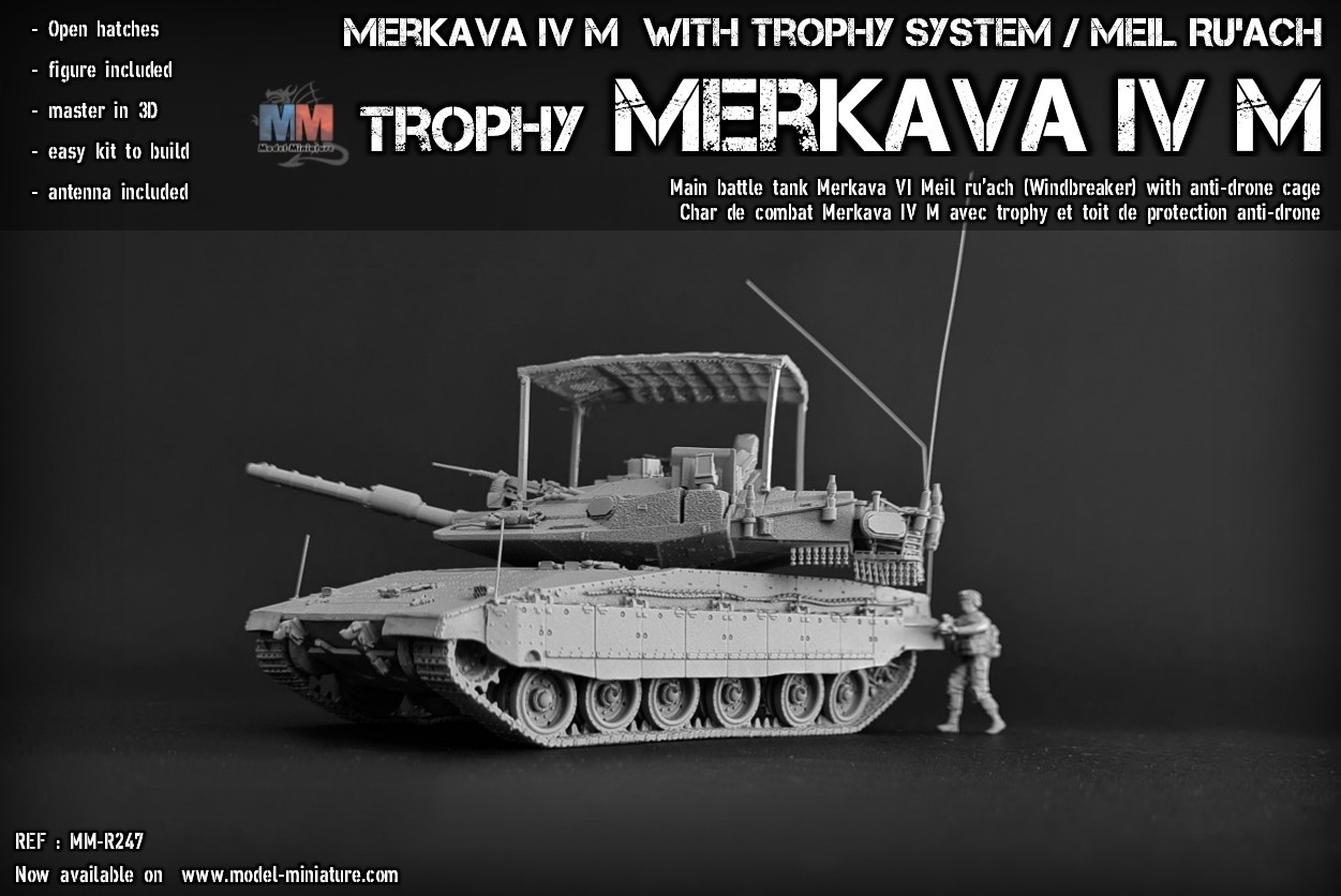 - Complete resin kit of the Merkava IV M, Trophy system and anti-drone cage (roof) at 1/72 scale, Israeli tank
