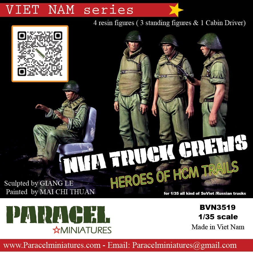 Some other drop as a bulky prepared in 1/35 scale is BVN3519 NVA Truck Group together with 3 status figures and a sitting driving force.