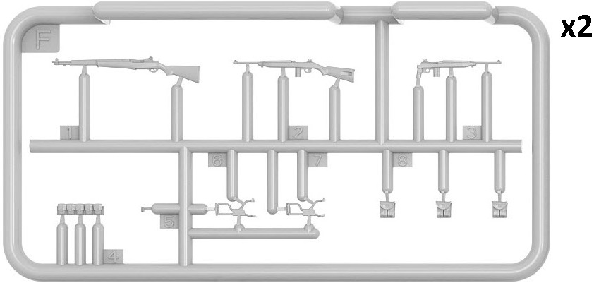 Tommy guns, both early and late, plus grease guns, map packs, and ammo are also included on this sprue.