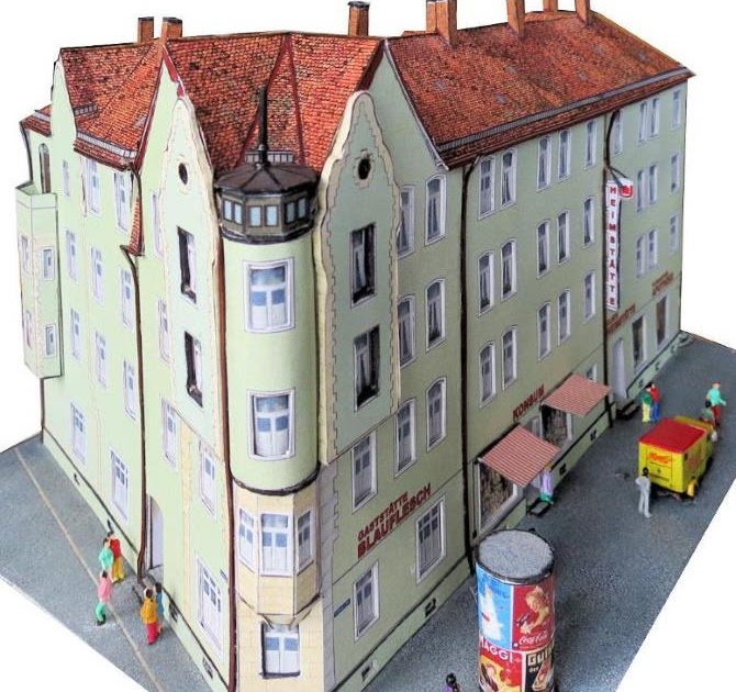 1950`s Blauflesch Building Paper Model In 1/160 Scale by Ausschneide Bogen