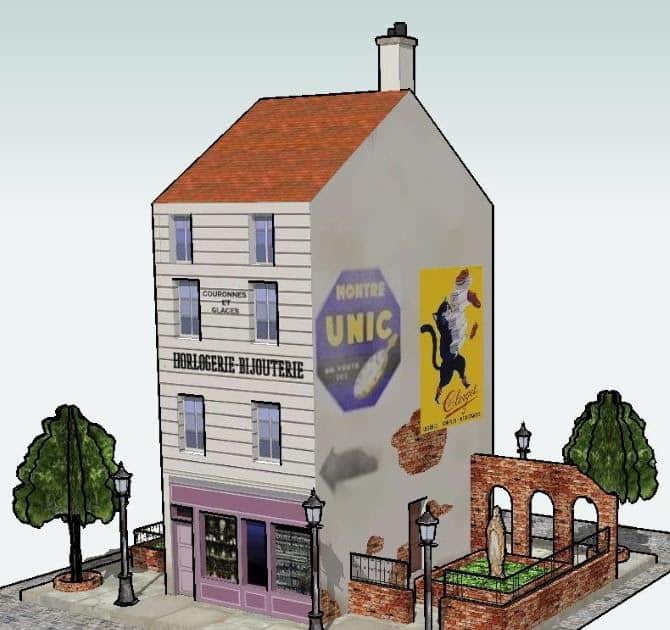 This is the "Horlogerie-Bijouterie", or the Watchmaking-Jewelry, a paper model in HO scale (1/87 scale) that is part of La Petite Cite (The Little City),...