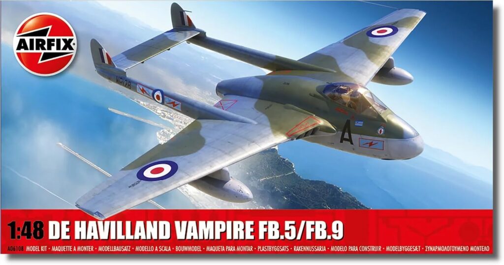 Airfix Model Airplane Gift Set – A06108 de Havilland Vampire, FB.5/FB.9 Plastic Plane, Model Kits For Adults & Children 14+, 1:48 Scale WWII Military Aircraft Models Real AeroplaneModel