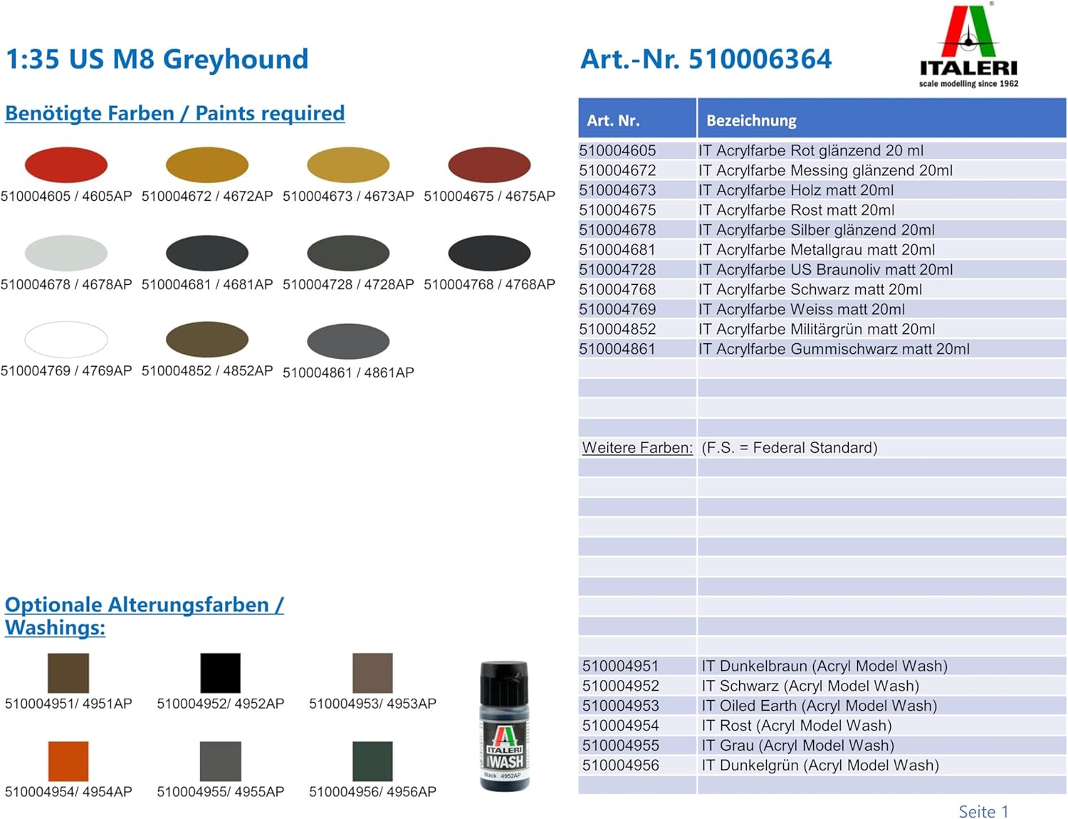 Shop Italeri 56364 1/35 M8 Greyhound Posted by Haluk Cetin August 27, 2025 On August 27, 2025 0 Price: $35.99(as of Aug 27,2025 19:51:48 UTC – Details) 1/35 M8 Greyhound This plastic model kit requires plastic cement and paint for assembly, and they are sold separately.