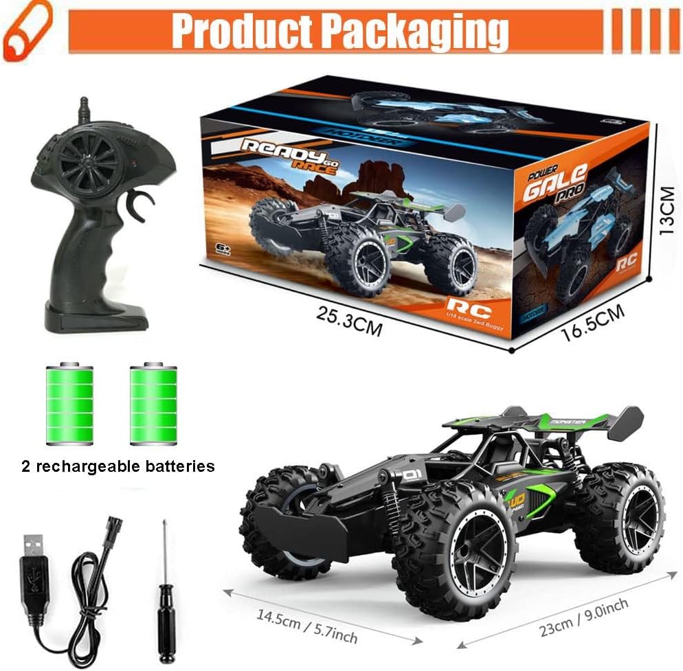 Sturdy and All-Terrain ready – The off-road remote controlled cars are designed with anti-slip tires that can handle grass, gravel and dirt. The robust chassis and shockproof build make it impact-resistant.