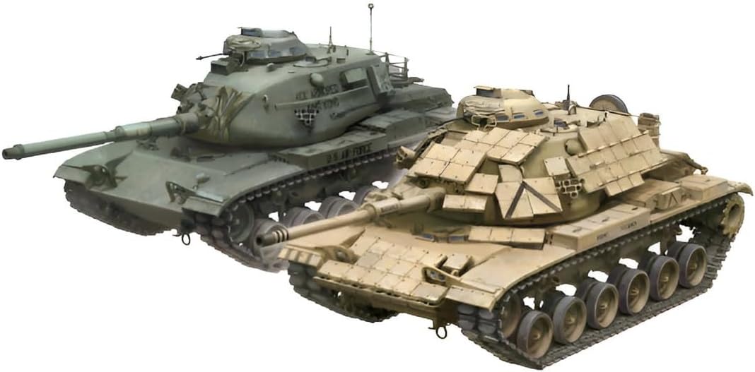 This is a plastic replica of the Tachom M60A1 ERA & M60A3 in 1/72 scale. The M60 was developed by the United States to replace the M46/M47/M48 and to compete with the T-54A tank of the Soviet Army. The M60A1 has been mass produced since 1962. It is an improved version that alters the shape of turret to fight the T-62 and modifies the suspension, firing control equipment, piloting equipment and other equipment in order to change the layout. The M60A1 was used by the U.S. Marine Corps in the Gulf War. It is equipped with ERA, or explosive reaction armor. The M60A3 was a modern version of the M60A1 which began mass production in 1978. It has been redesigned for increased accuracy of the main weapon by replacing and strengthening shooting control equipment. In the USA. By 1983, about 1,700 M60A3 products had been produced and 2,100 M60A1 have been upgraded to A3 specifications. Link-and-length shoe sash.