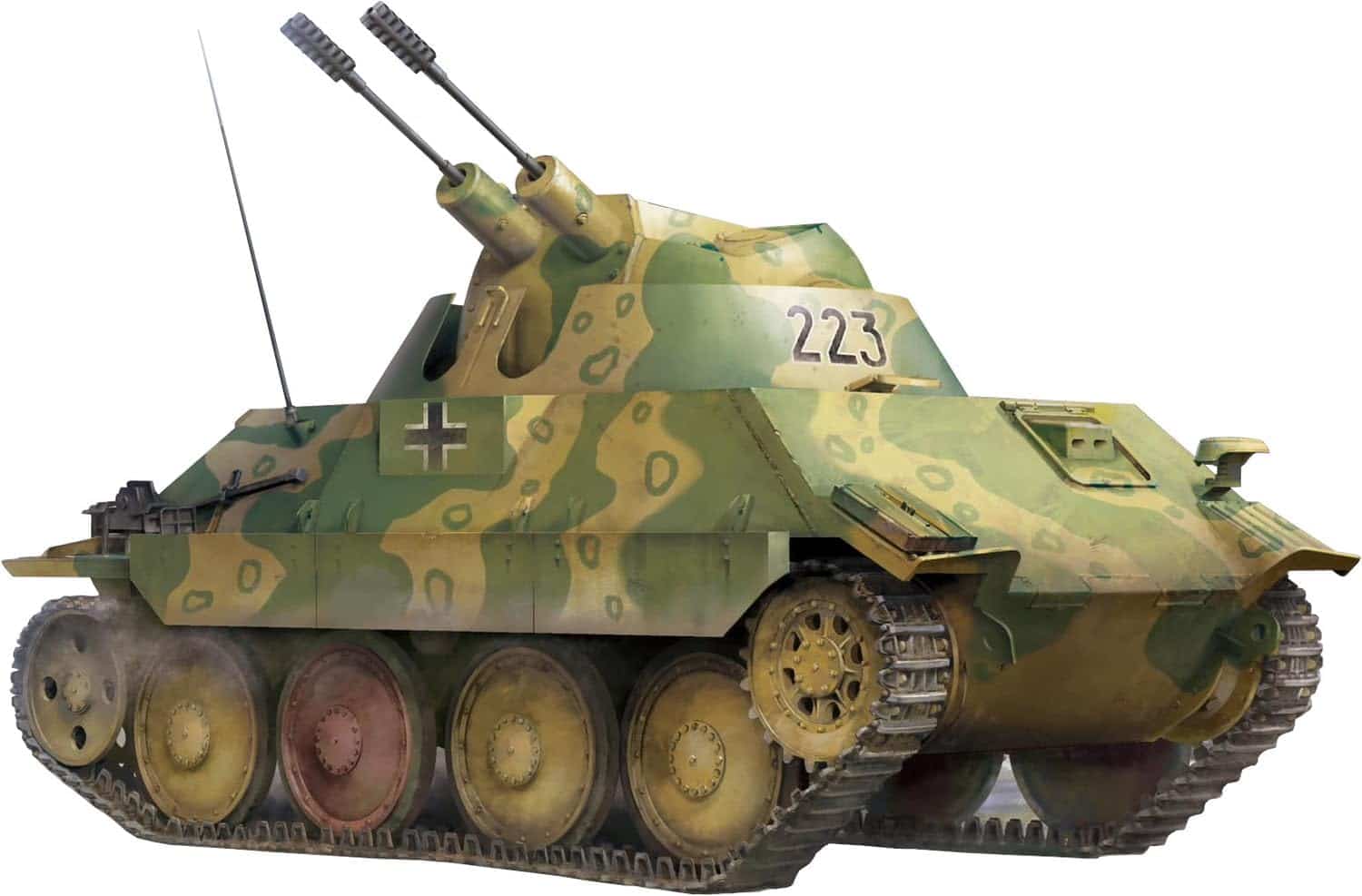 The plastic model kit is a 1:35 scale Flakpanzer (38(t) Kugelblitz by Takom. Glue and paint are not included.assembly required 1/35 scale plastic model kit without interior
